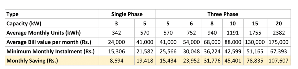 Customers can enjoy substantial monthly savings based on their chosen system capacity. As explained in the table, as the system size grows, so do the savings: